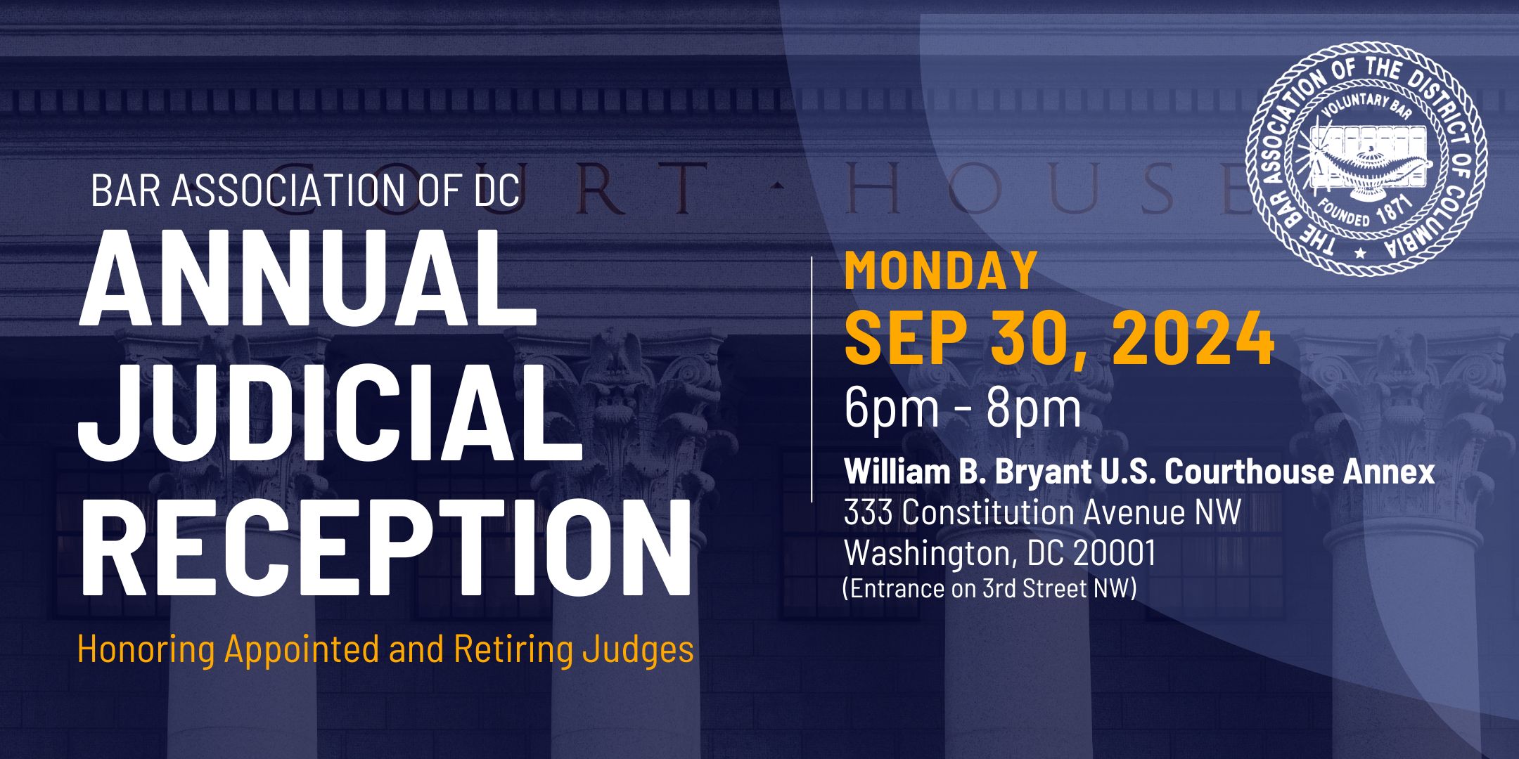 >>REGISTER<< Join us on Monday, September 30, 2024 at 6PM in the beautiful Atrium of The United States District Court for the District of Columbia for an evening of networking and celebration. This in-person event is a great opportunity to connect with fellow legal professionals and honor the judiciary. Don't miss out on this chance […]
